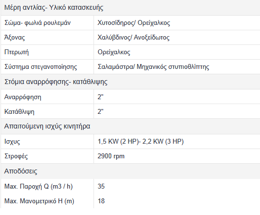 Διαθέσιμοι τύποι αντλίας : ΑΑ 100- 12 & ΑΑ 100- 15