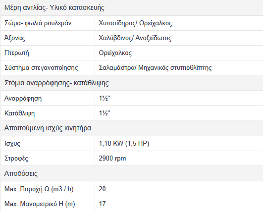 Διαθέσιμοι τύποι αντλίας : Μ 30- 10