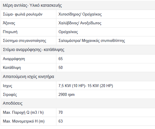 - Άντληση πετρελαίου, ελαφρών ελαίων.