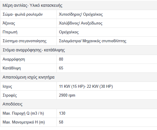 Διαθέσιμοι τύποι αντλίας : Ρ 65- 200/ Φ 180, Ρ 65- 200/ Φ 190, Ρ 65- 200/ Φ 205 & Ρ 65- 200/ Φ 215