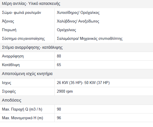 Διαθέσιμοι τύποι αντλίας : Ρ 65- 250/ Α, Ρ 65- 250/ Β, Ρ 65- 250/ Γ