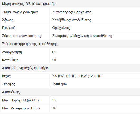 - Άντληση πετρελαίου, ελαφρών ελαίων.