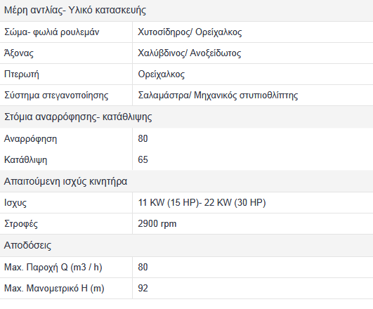 Διαθέσιμοι τύποι αντλίας : Ρ 65- 200/ 2Α, Ρ 65- 200/ 2Β, Ρ 65- 200/ 2Γ & Ρ 65- 200/ 2Δ